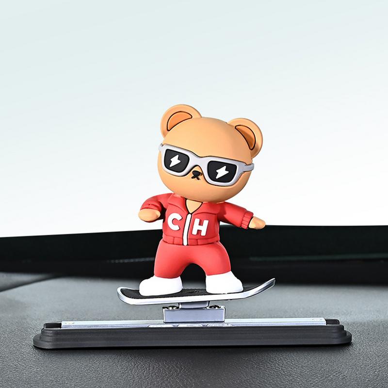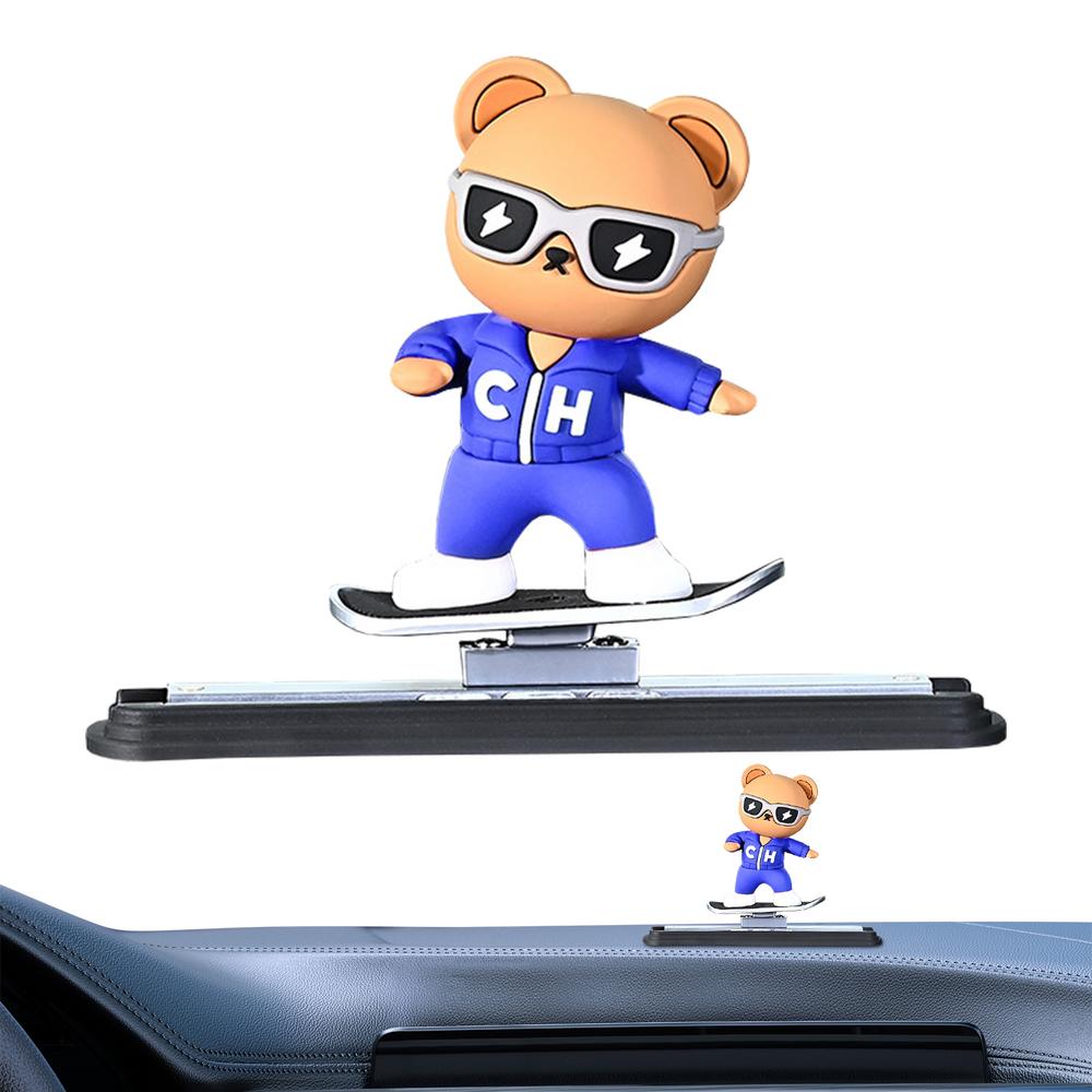 Автомобильный скейтборд медведь украшение маленькая мультяшная фигурка скейтбордиста для приборной панели автомобиля автомобильная отделка клей для дорожного путешествия веселье для