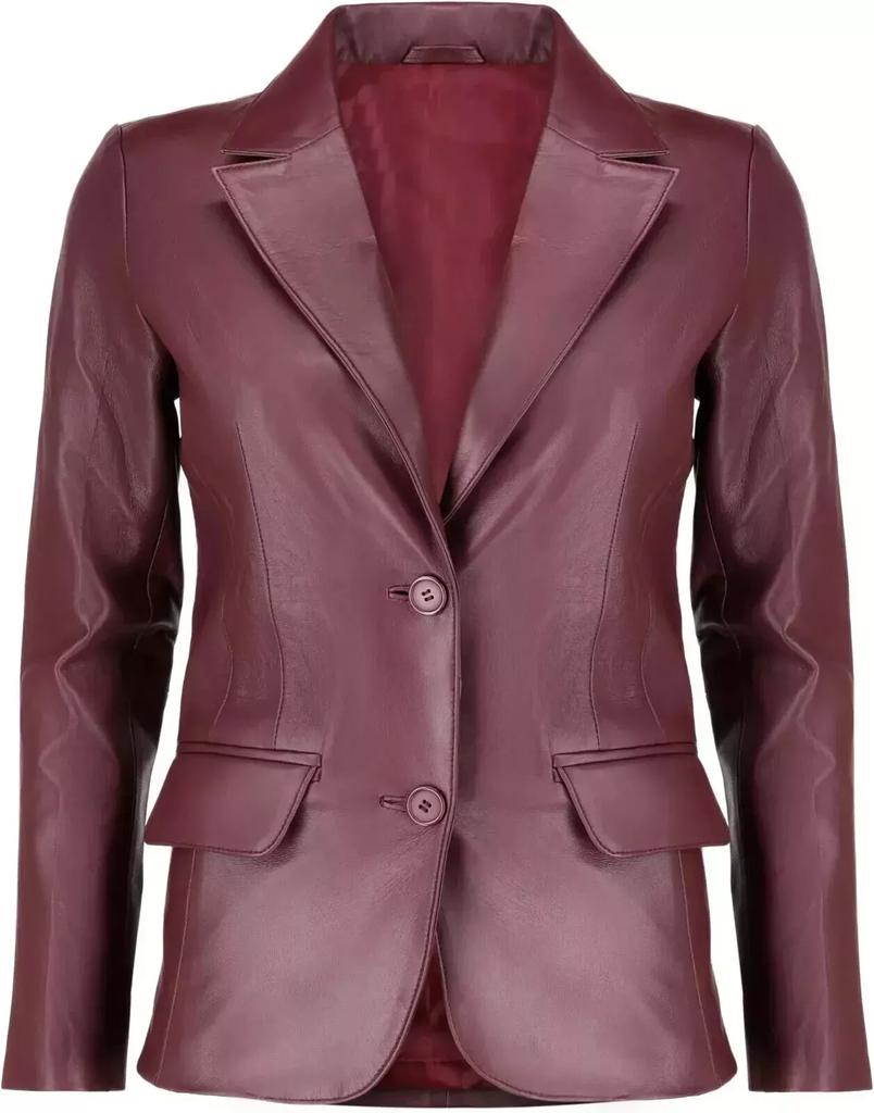 Блейзер женский из кожи ягненка, повседневный, бордовый, натуральный, стильный, ручной работы, классический