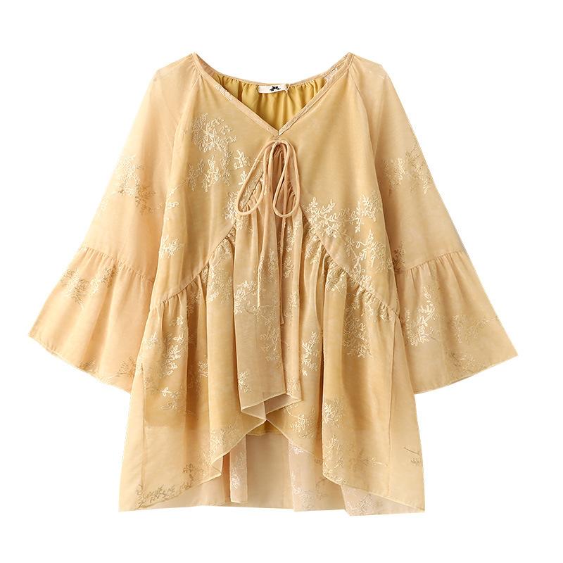Новый топ с V-образным вырезом и оборками с кружевной завязкой для женской одежды больших размеров на весну и осень