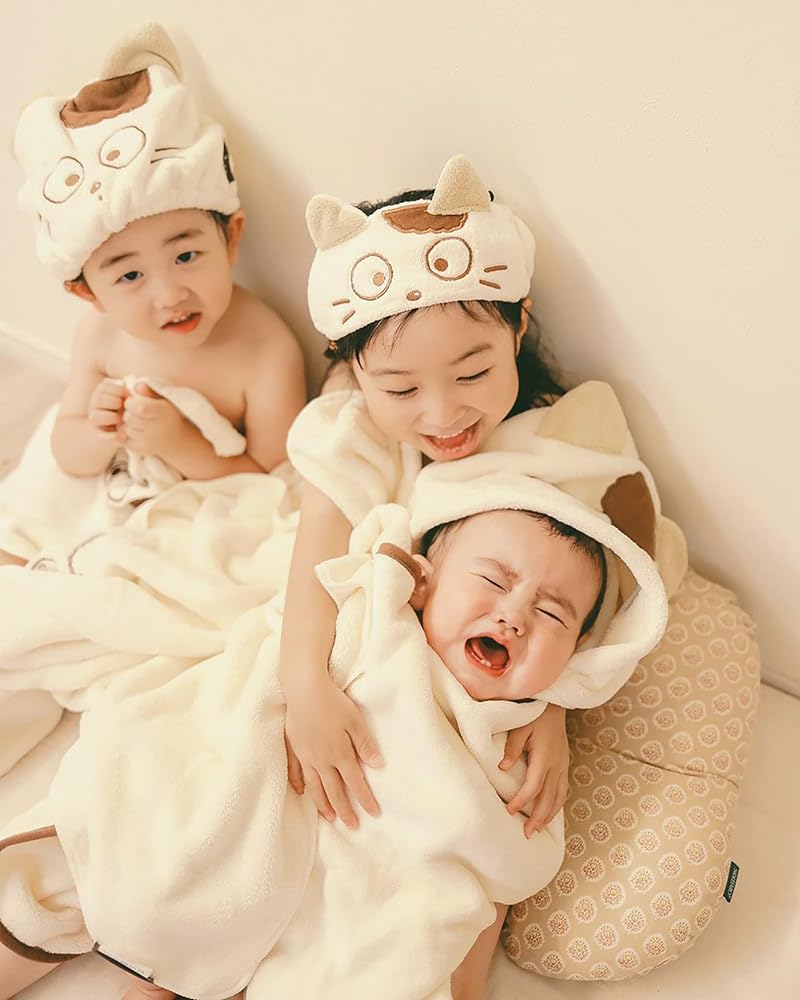 Skater Tama Friends You Know My Hooded Bath 108cm x 92cm & "Do Tama?" Poncho, Moisture-Wicking, Quick-Drying, (BPO1-A)