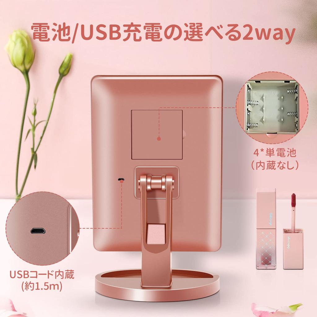 FASCINATE Mirror with Tabletop Stand Stepless 10x Adjustable Popular Pink 21-LED Light, Mirror, Dimming, USB/Battery Powered, Magnification, Bright,