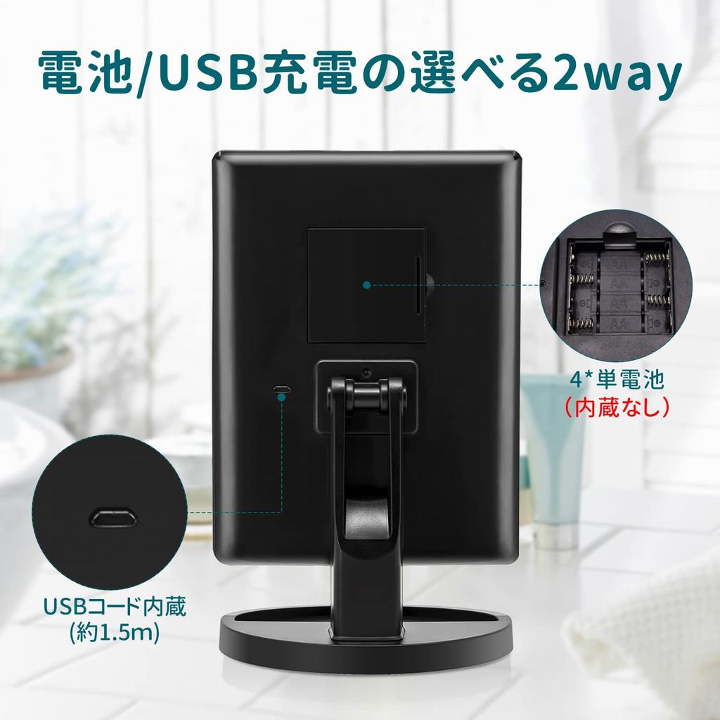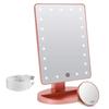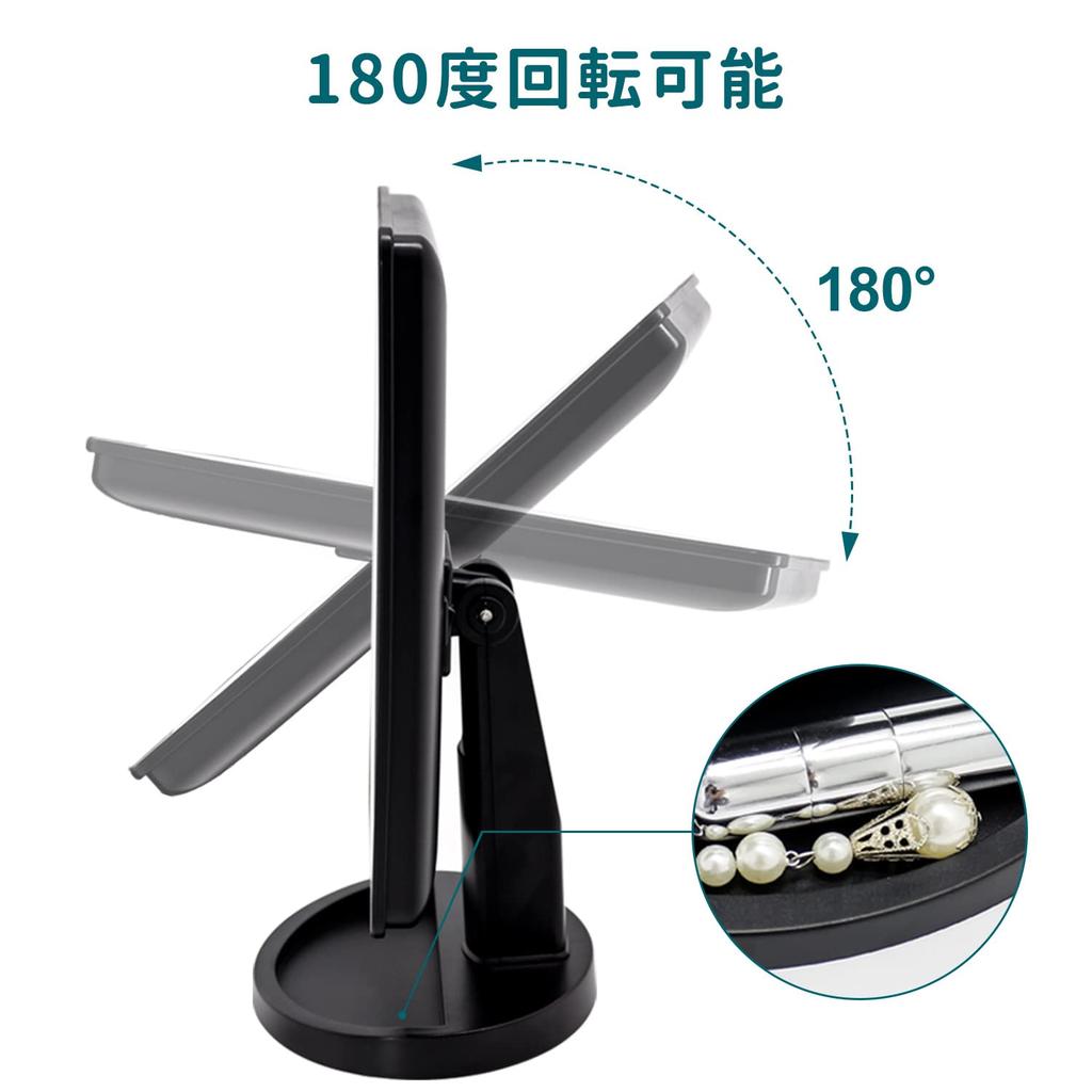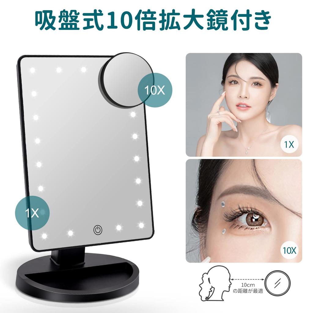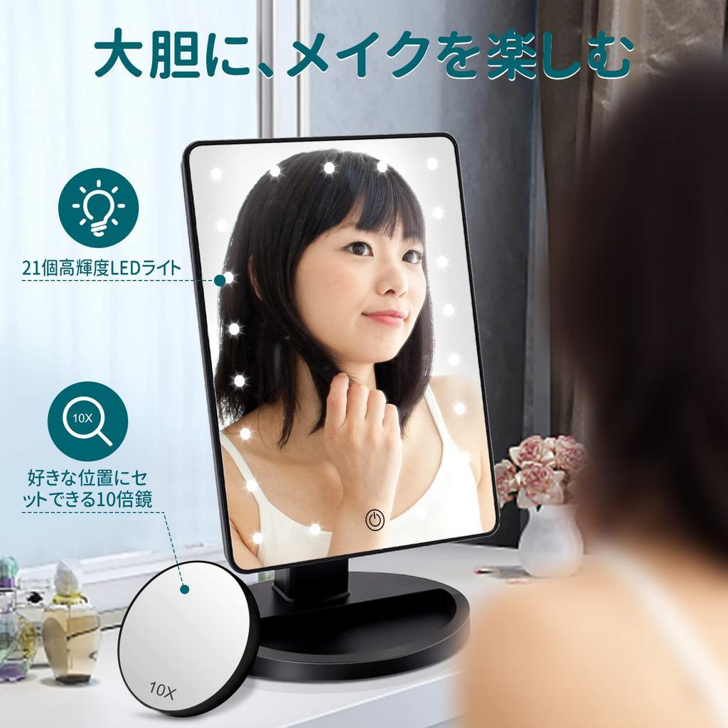 FASCINATE Mirror with Tabletop Stand Stepless 10x Adjustable Black 21-LED Light, Mirror, Dimming, USB/Battery Powered, Magnification, Bright, 180°