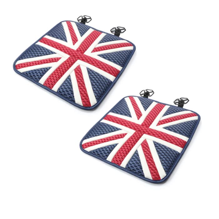 Set of 2 Memory Foam Seat Cushions in Union Jack and Perfect for BMW MINI and Other Seat Seat Union Jack and Checkered Flag Blue, Vehicles. Cushions,
