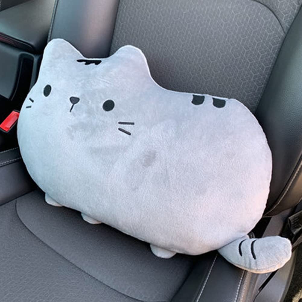 YUYAKESHI Подушка для шеи и Пушистый Милый Кот Автомобильная Пряжка для Вождения Съемная и Моющаяся Поясничная Подголовник, Подушка, Дизайн, Комплект, Включено, (Серый, Подушка)
