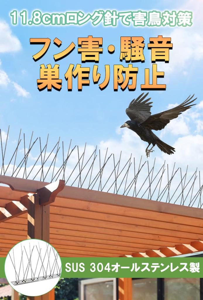 [Длинные шипы предотвращают проникновение птиц] Легкая в сборке и установке, эта ловушка для птиц идеально подходит для предотвращения появления птиц-вредителей. Изготовлен из 100% нержавеющей стали (SUS304), он устойчив к ржавчине и имеет длинные шипы длиной до 11,8 см для предотвращения проникновения птиц.