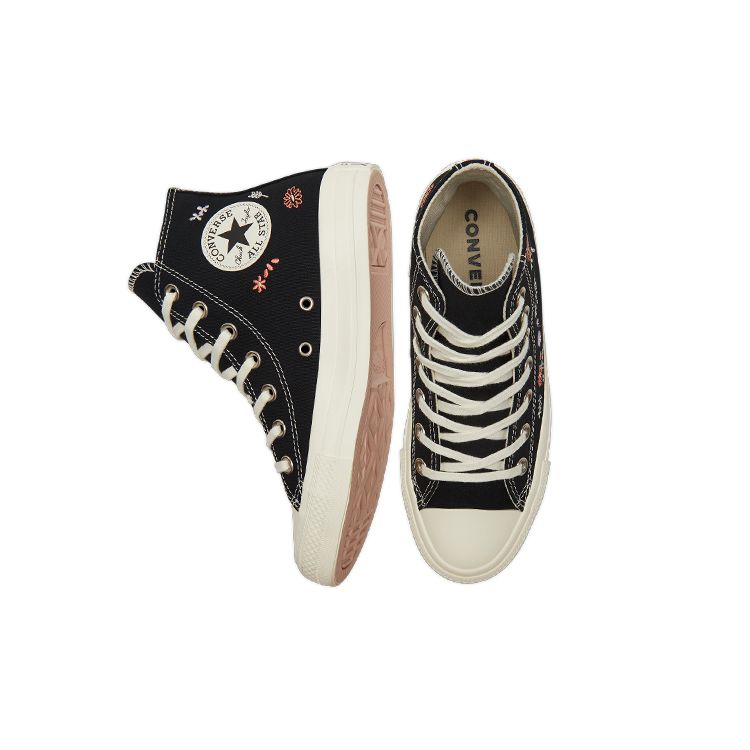 Converse Chuck Taylor All Star Высокие вышитые цветочные кеды женские черные разноцветные Egret A01585C