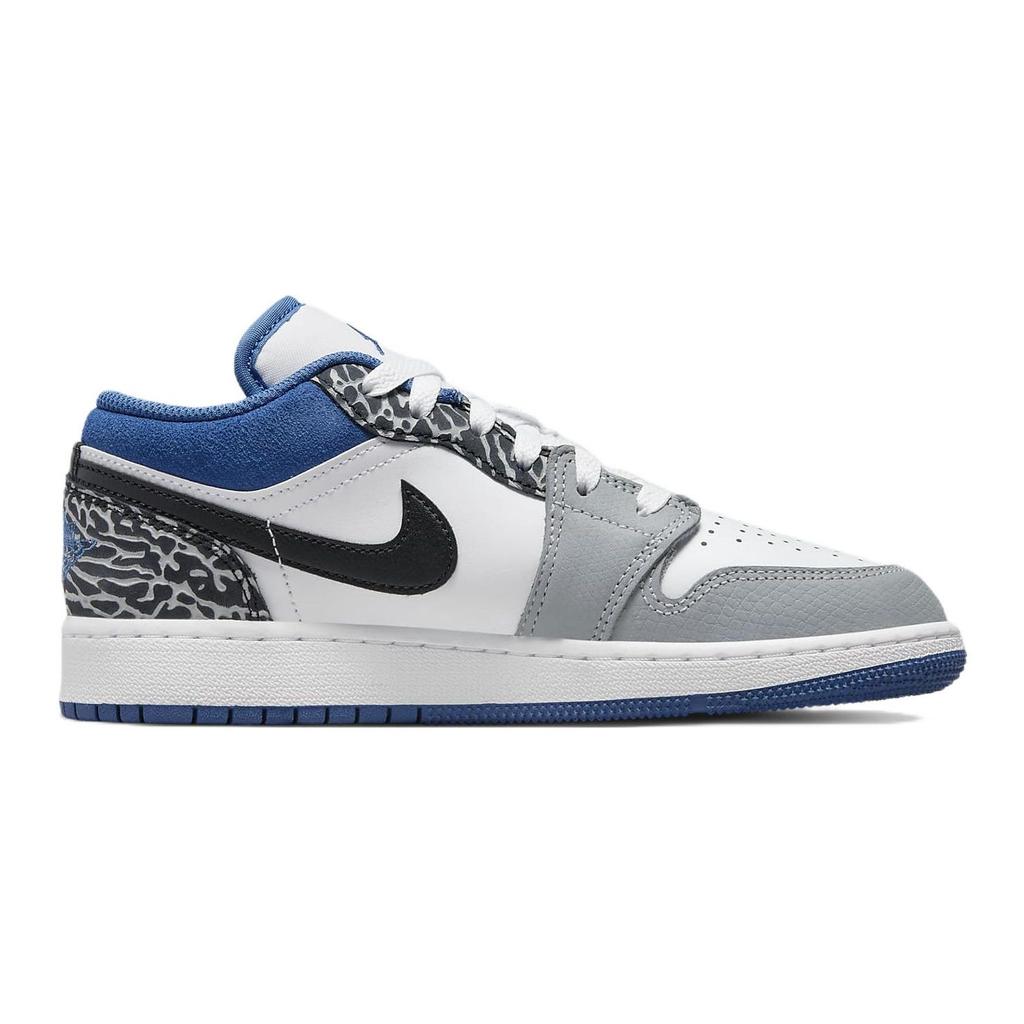 Детские кроссовки Air Jordan 1 Low SE GS True Blue Белый Черный Цементно-серый DQ2514-140