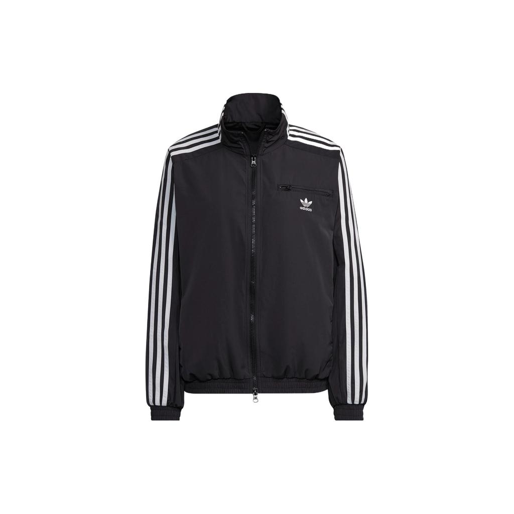 Adidas Спортивная куртка Originals Trefoil с полосатым принтом и воротником-стойкой на молнии, женские топы, черные HM2152