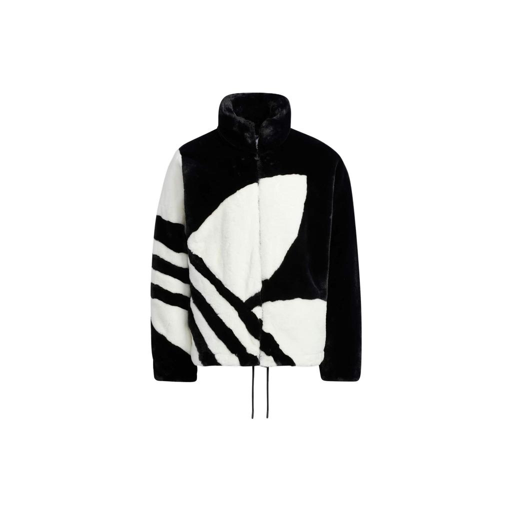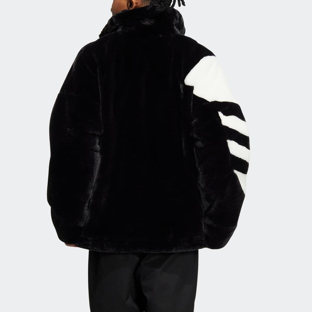 Adidas Меховая куртка Originals с полосатой молнией и воротником-стойкой, топы унисекс, черные HR3483