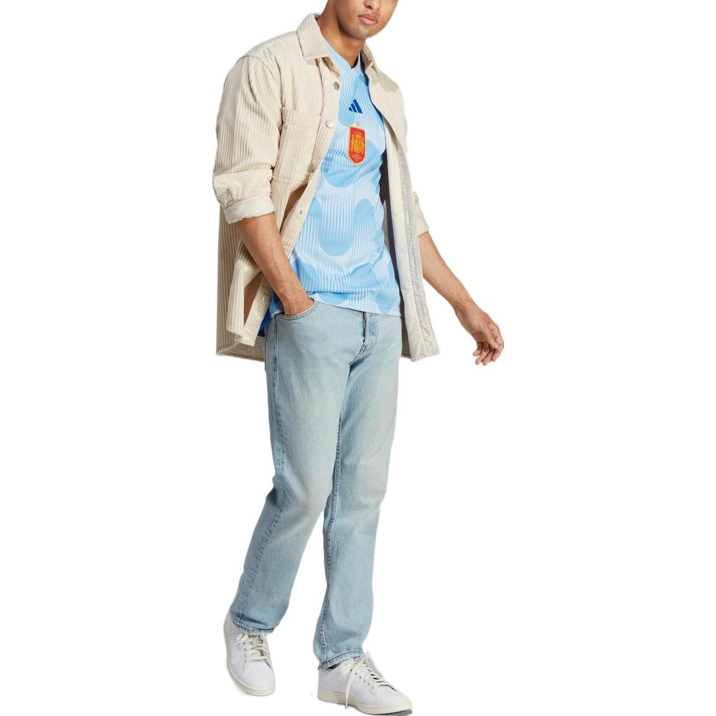 Adidas Футбольная форма с коротким рукавом и эмблемой чемпионата мира по Катару 2022 года, мужская спортивная одежда на выезде из Испании, синяя HE2020