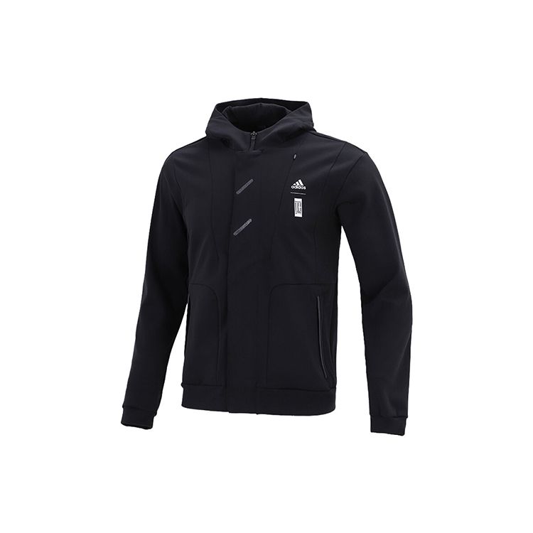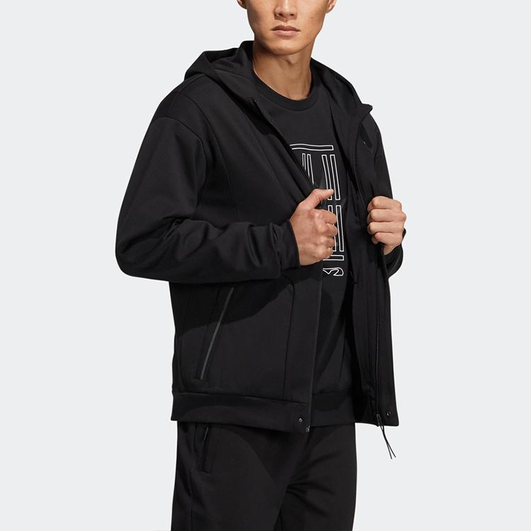 Adidas Спортивная куртка с капюшоном с принтом логотипа, мужская верхняя одежда, черная HE5116