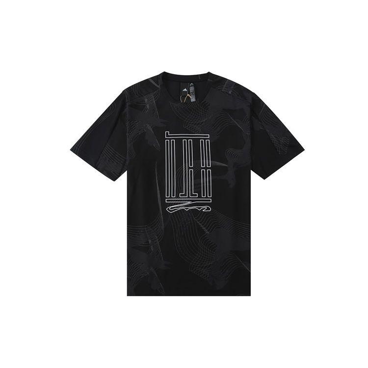 Adidas Футболка с коротким рукавом для тренировок и занятий спортом с узорчатым принтом, повседневная, мужская, черная HE5140