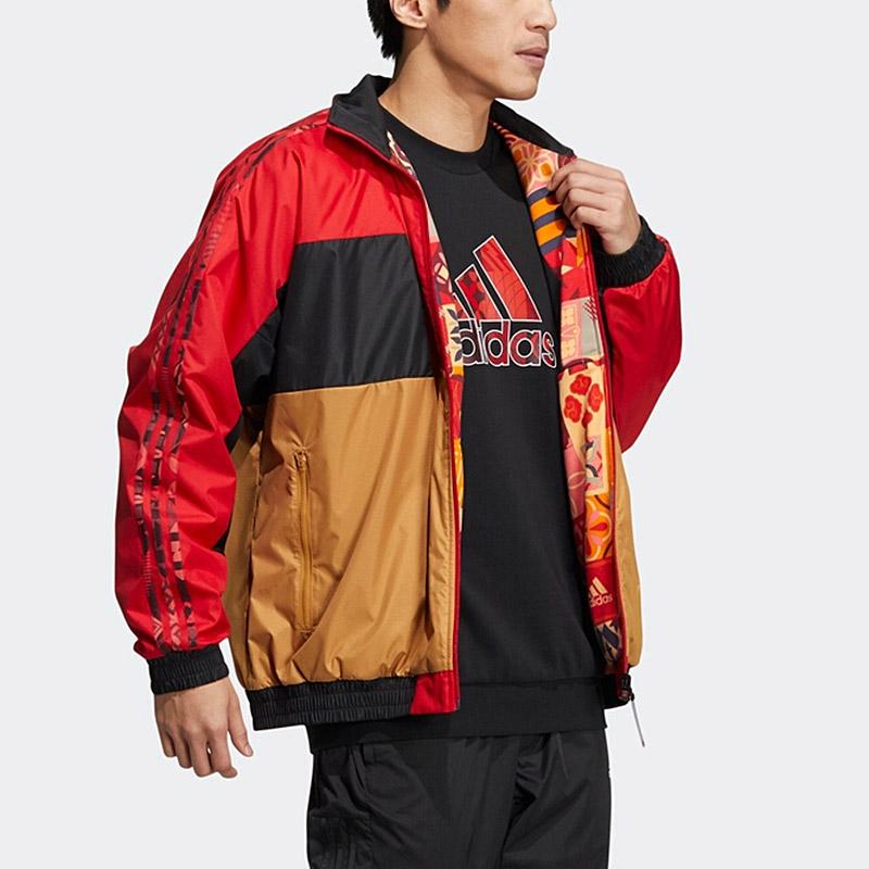 Adidas Двусторонняя куртка в полоску в стиле пэчворк с логотипом Мужская куртка красная HI3284