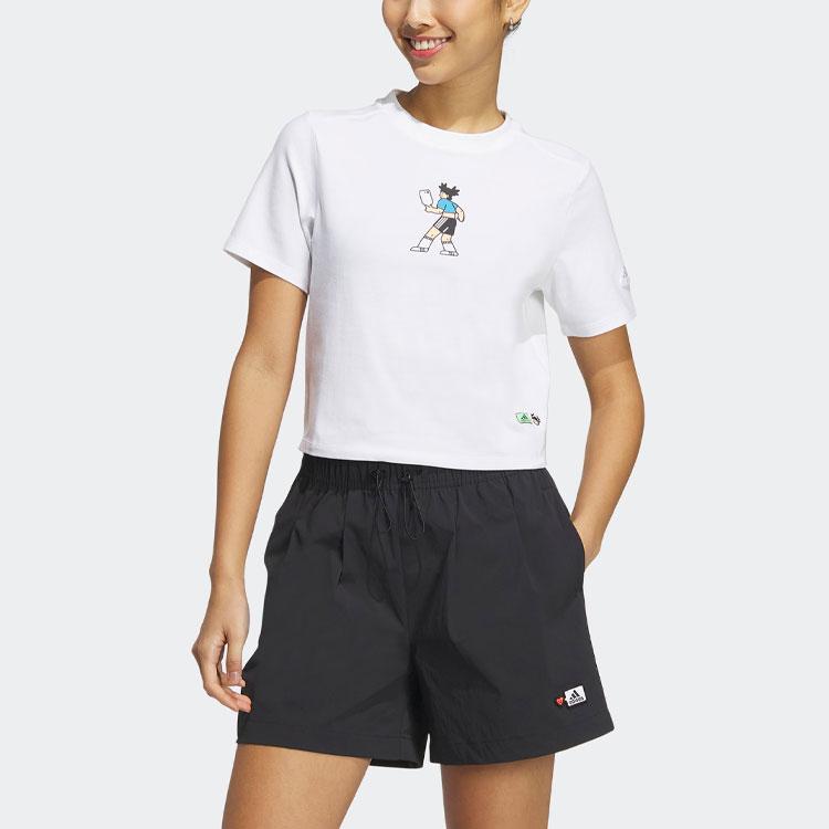 Adidas X Seebin SS23 Логотип Вышитый Буквенный Принт Укороченная Футболка Женские Топы Белый HY2816