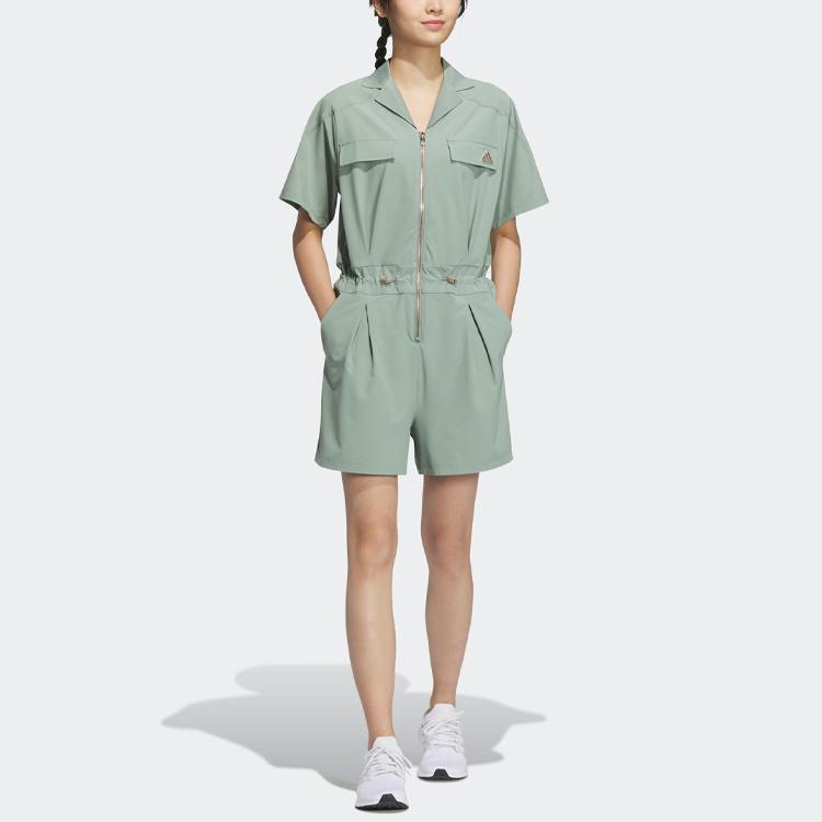 Adidas Чистый цвет спортивный повседневный женский комбинезон с короткими рукавами серебристо-серый зеленый HY2843