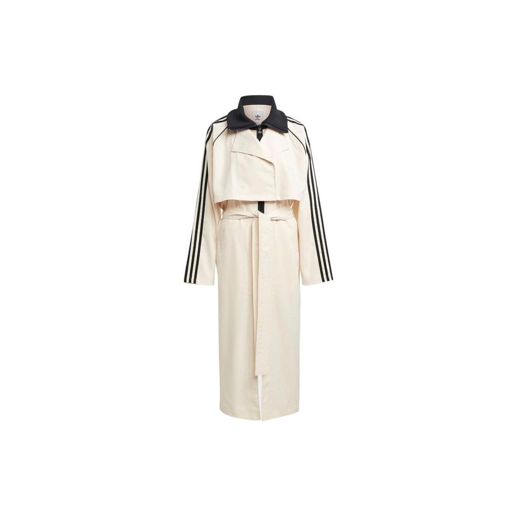 Adidas Оригинальный однобортный длинный плащ с трилистником и поясом по бокам, женская верхняя одежда белого цвета IC5588