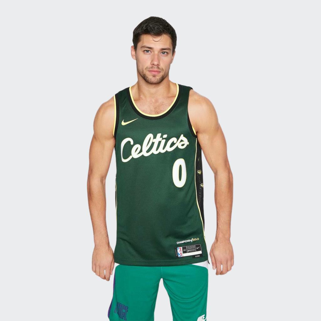 Nike Сплошной цвет Бостон Селтикс Джейсон Татум Нет. 0 Баскетбольная майка Мужские топы Зеленые DO9586-332