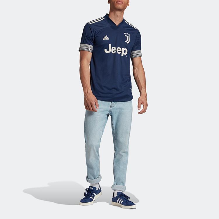 Adidas Футболка в полоску с буквенным логотипом и коротким рукавом, выездная версия игрока, топы унисекс «Ювентус», синие FN1007