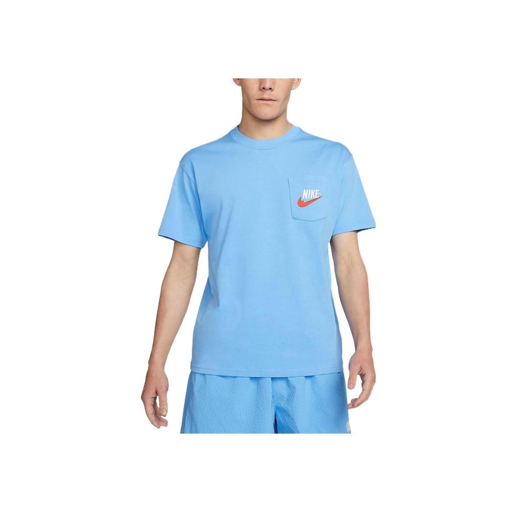 Nike Спортивная повседневная дышащая футболка с логотипом на спине, круглым вырезом и короткими рукавами, мужские топы, университетский синий, DM6426-412