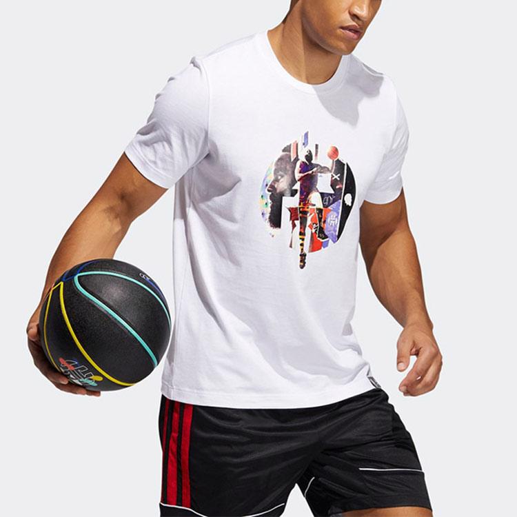 Adidas Свободная футболка с коротким рукавом с абстрактным принтом, мужские топы, белые GH6717