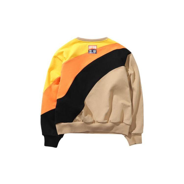 Li-Ning 2019 Неделя моды в Нью-Йорке, коллекция, пуловер с цветными блоками, толстовка с длинными рукавами и круглым вырезом, мужская толстовка ароматного абрикоса AWDP727-2