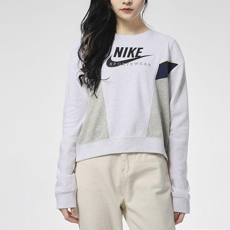 Nike Повседневный спортивный пуловер с круглым вырезом и длинными рукавами, женские топы Off-White CZ8599-051
