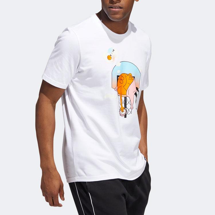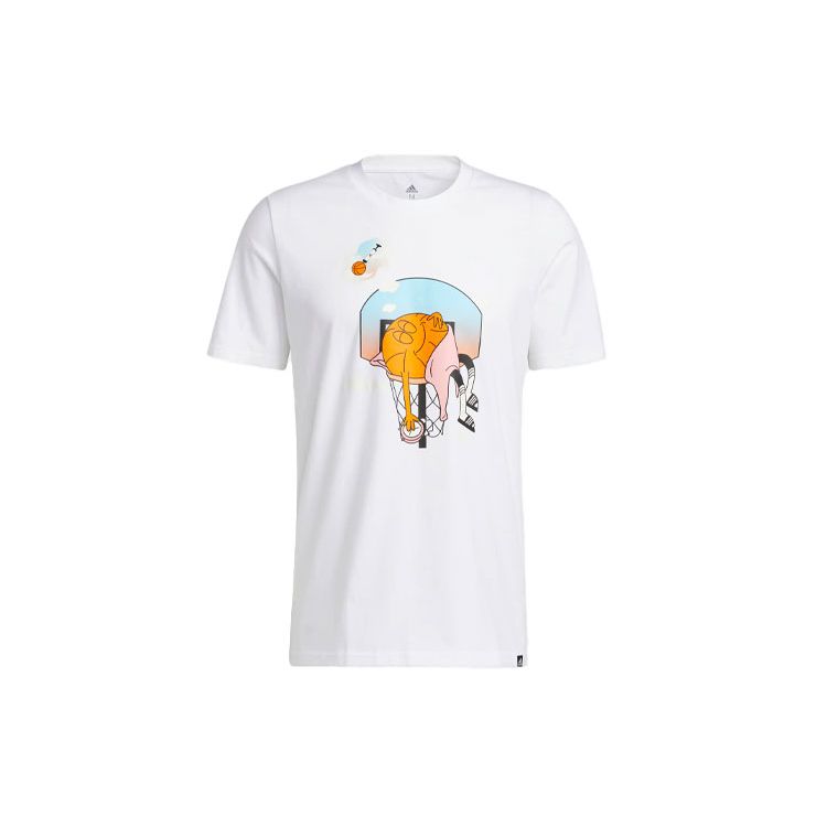 Adidas Баскетбольная спортивная футболка с мультяшным принтом и короткими рукавами, мужские топы, белые HS4329