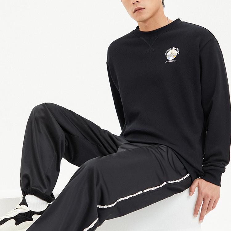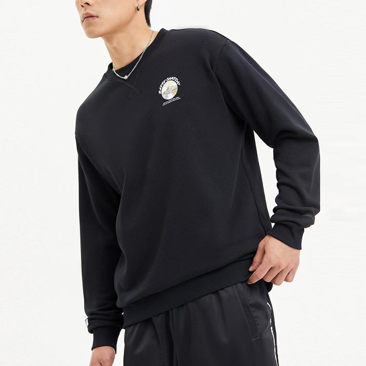 Anta Толстовка с круглым вырезом и длинными рукавами с буквенным принтом и логотипом, топы унисекс, черный 952218732-3