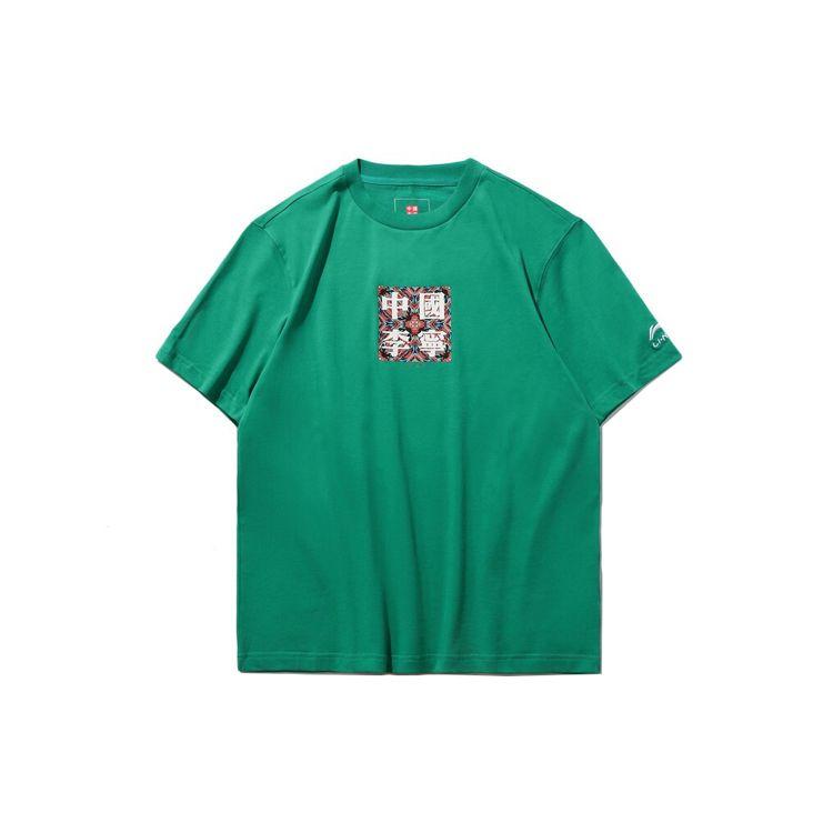 Li-Ning SS20 Неделя моды Серия Дуньхуан Принт Футболка с коротким рукавом Мужские топы Зеленый AHSQ069-3