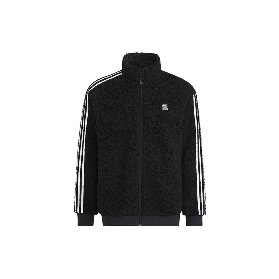 Adidas Neo Logo Pattern Stripe Украшенная куртка на флисовой подкладке Мужская верхняя одежда Черный HN8731 — купить товар онлайн с бесплатной доставкой по всему миру!