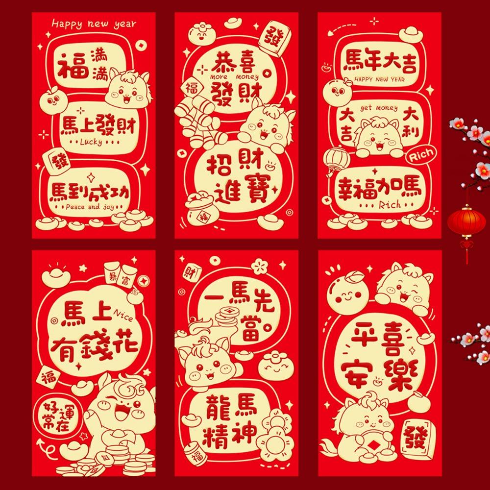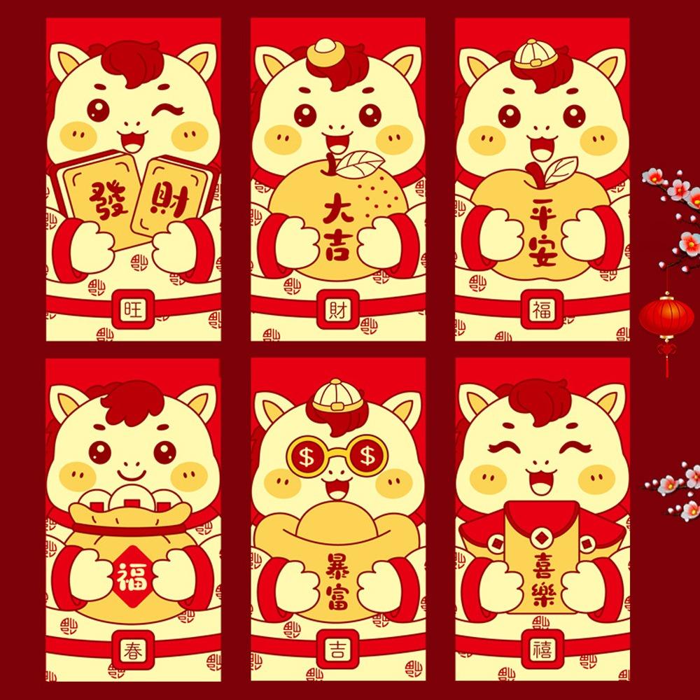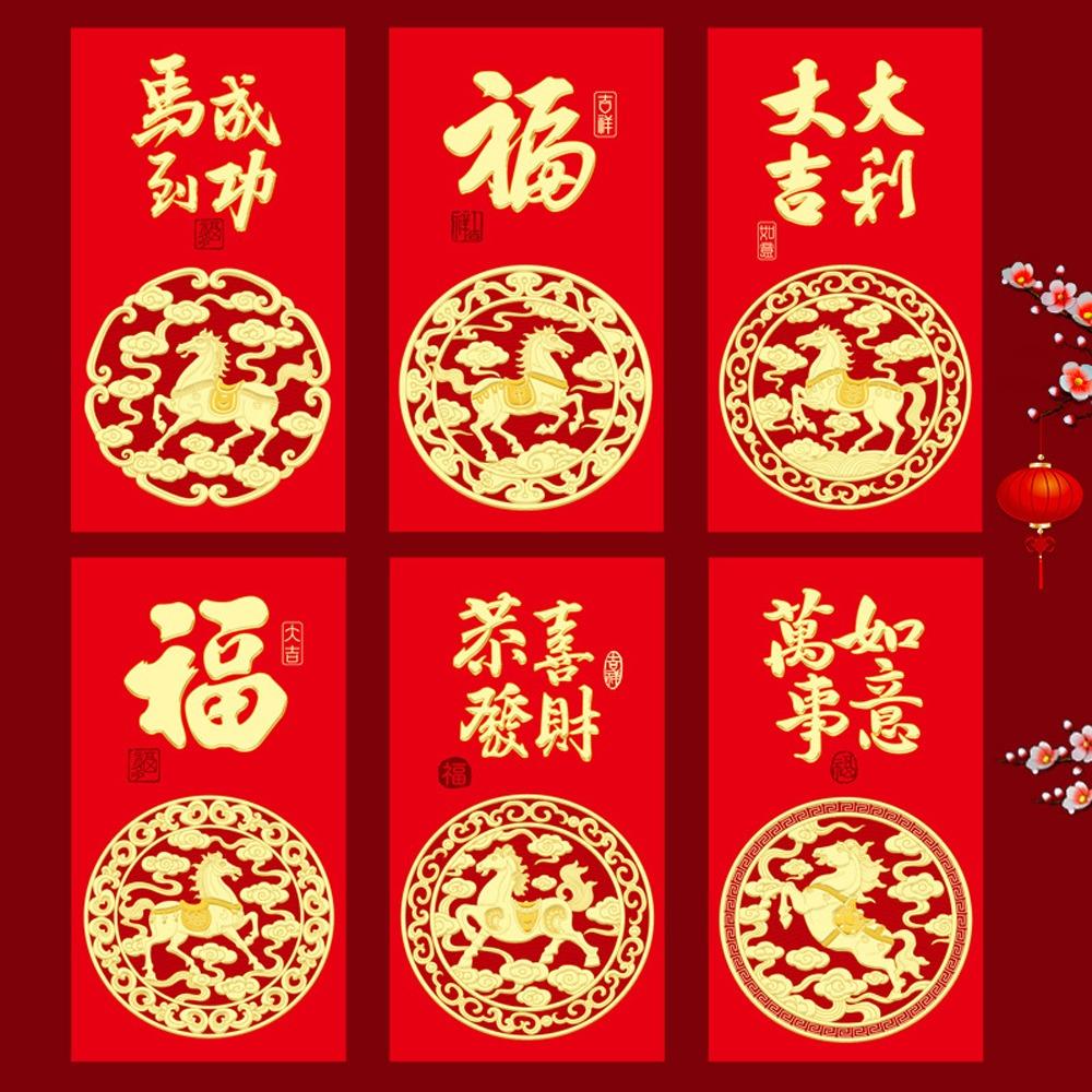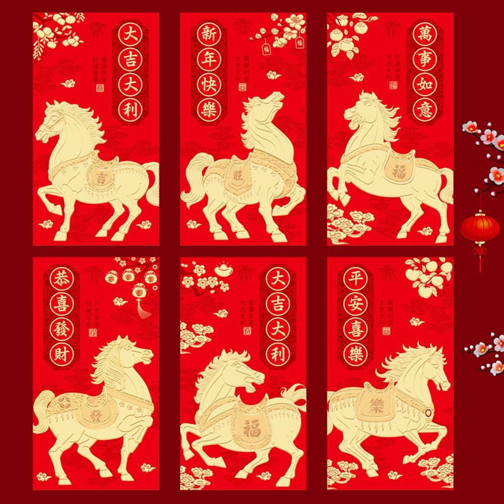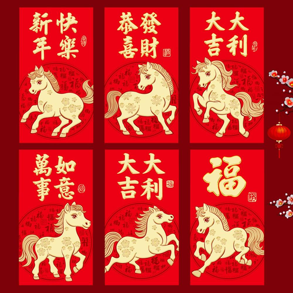 6 шт. Благословение 2026 Новый год Красный конверт Бумага Счастливый Красный Карман Денежные Пакеты Свадебный Случай
