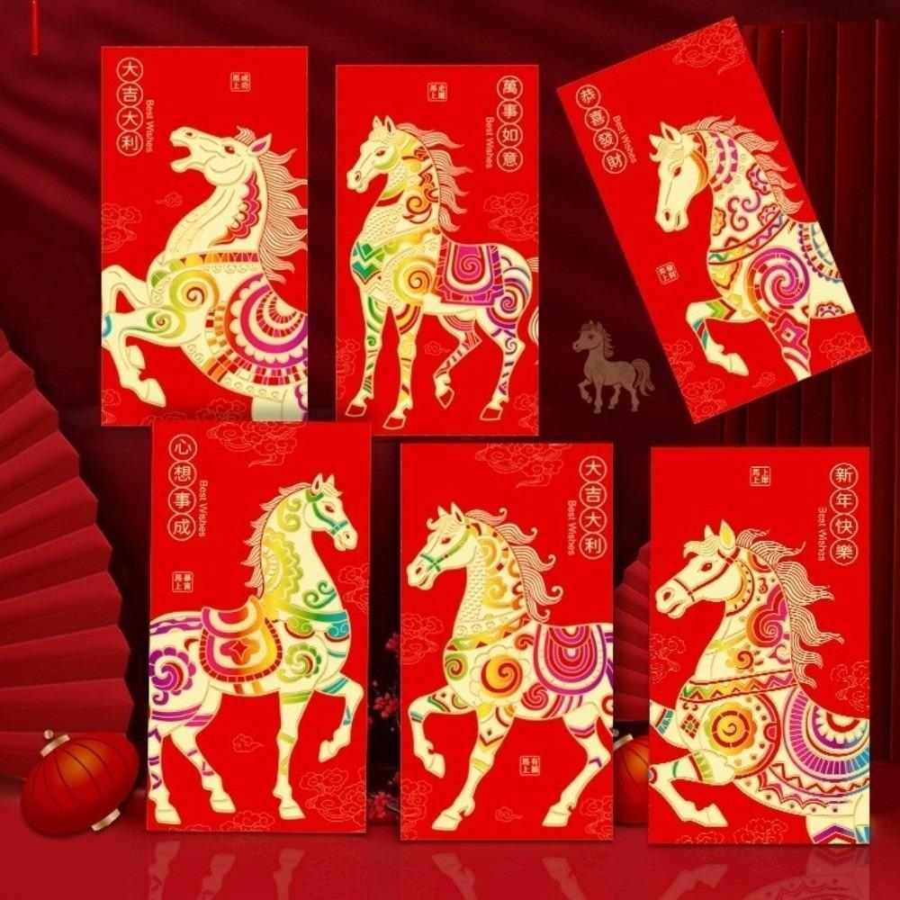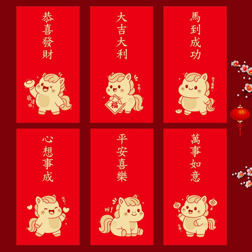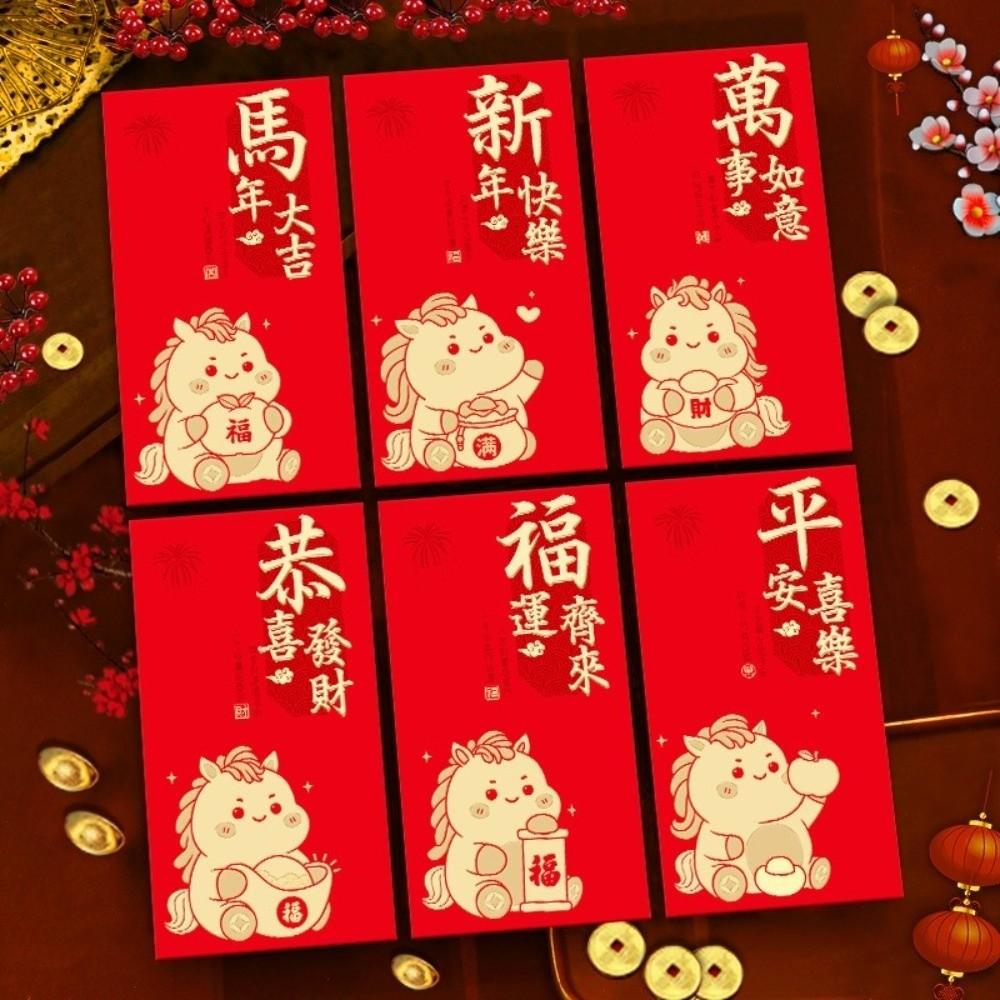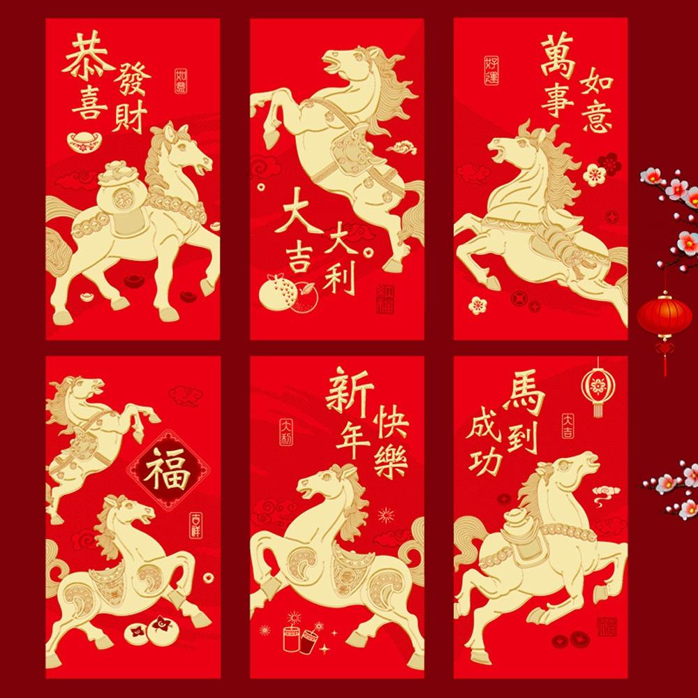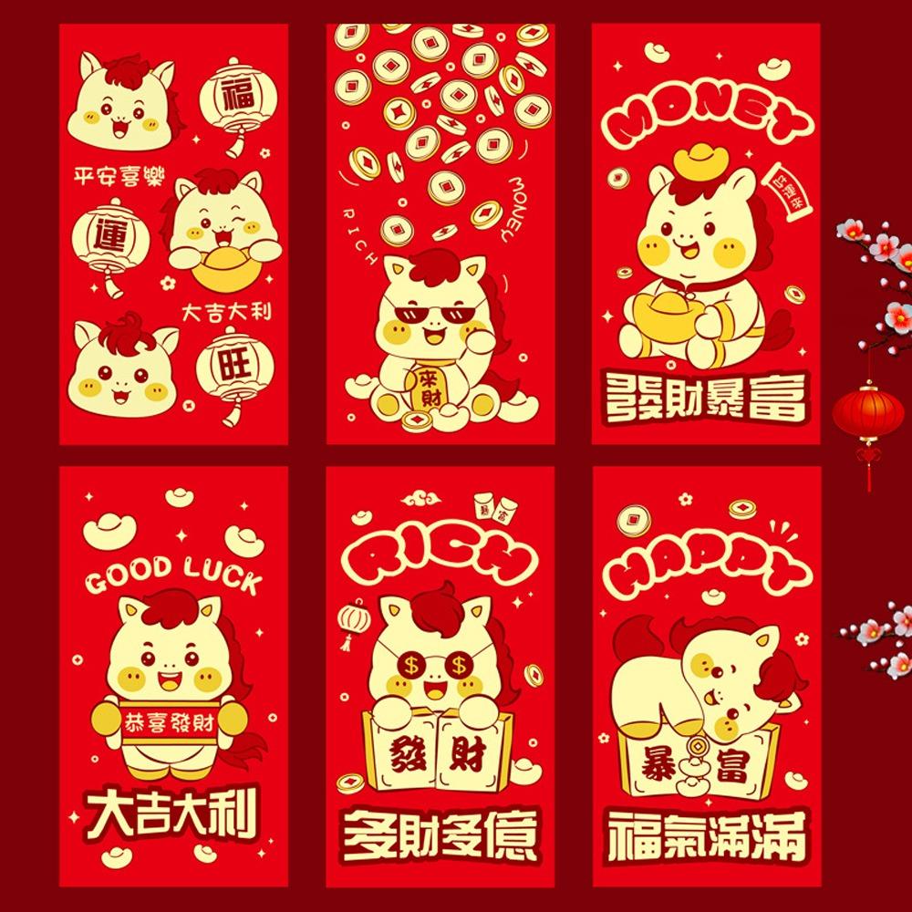 6 шт. Благословение 2026 Новый год Красный конверт Бумага Счастливый Красный Карман Денежные Пакеты Свадебный Случай