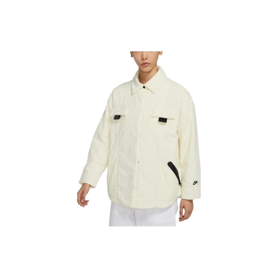 Nike Однотонная хлопковая куртка-рубашка женская верхняя одежда бежевого цвета DD4631-715