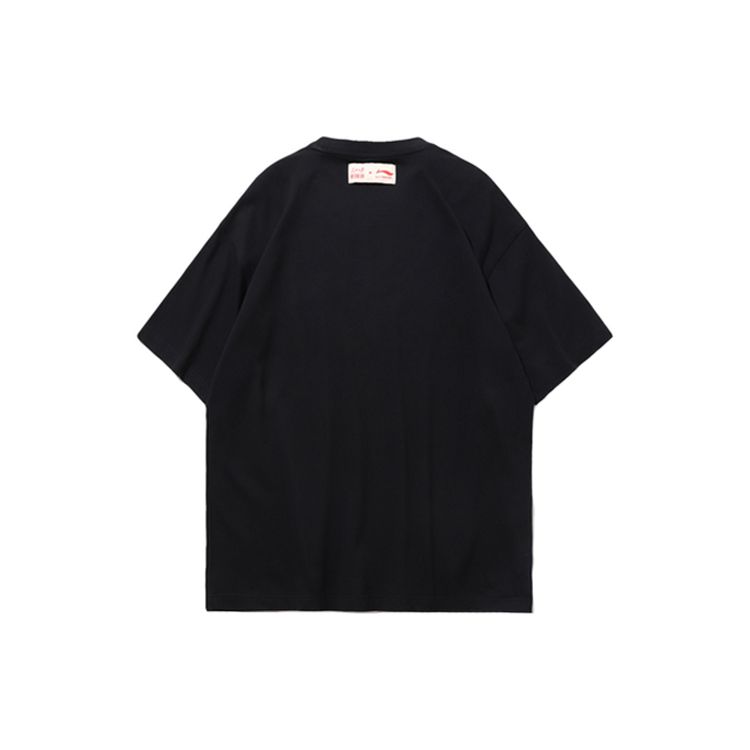 Li-Ning Мужская футболка с короткими рукавами и короткими рукавами X Peoples Daily New Media, черные ATSP419-2