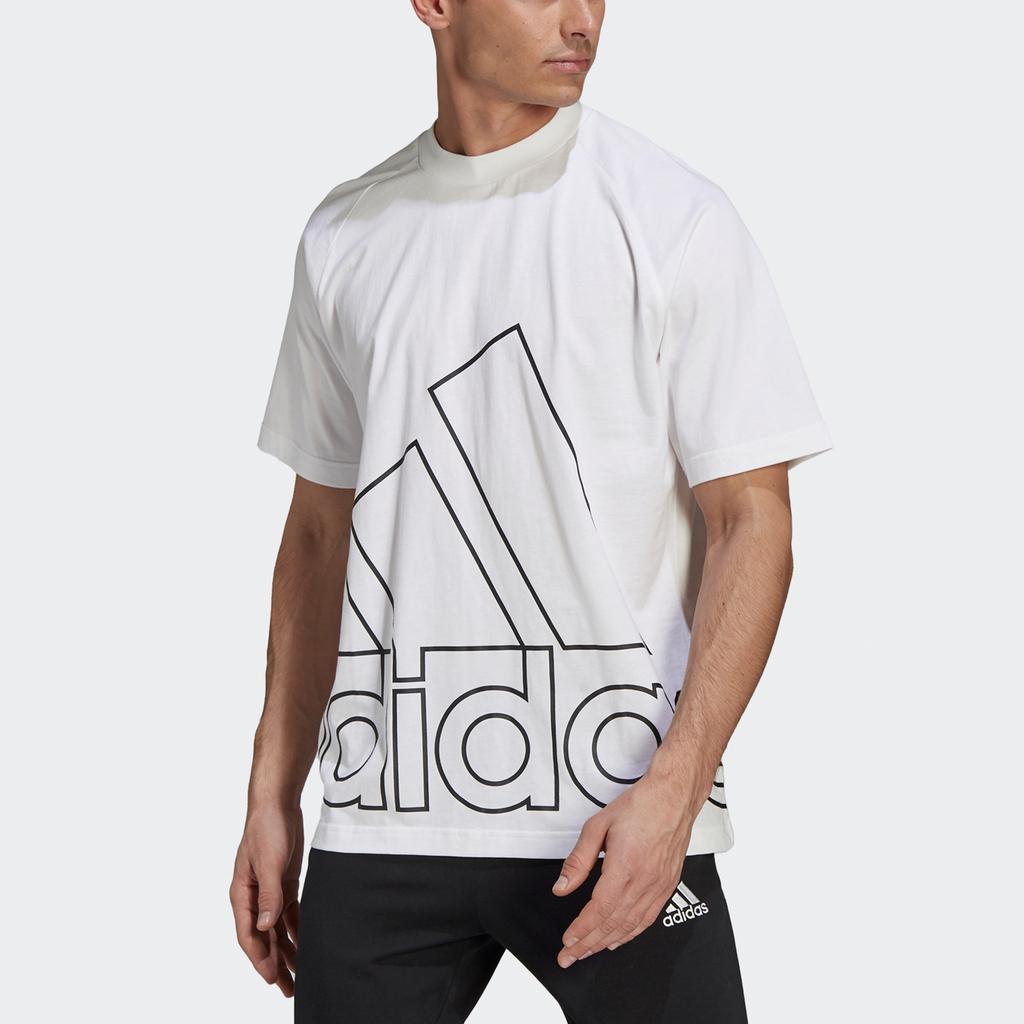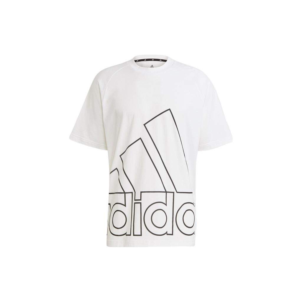 Adidas Футболка с круглым вырезом и спортивным принтом с большим логотипом, мужские топы, белые GU4290