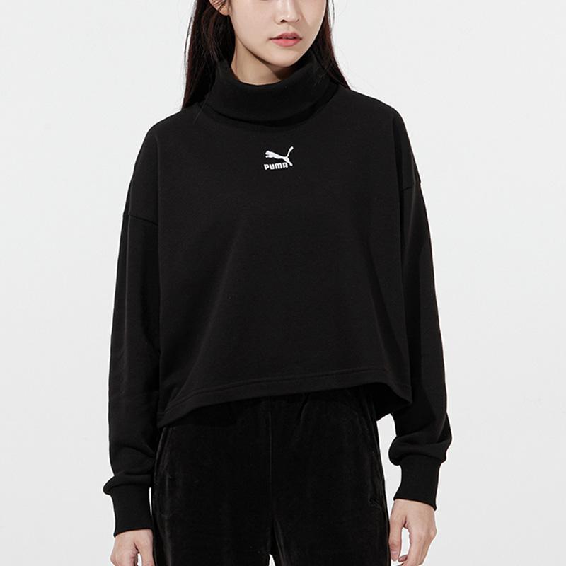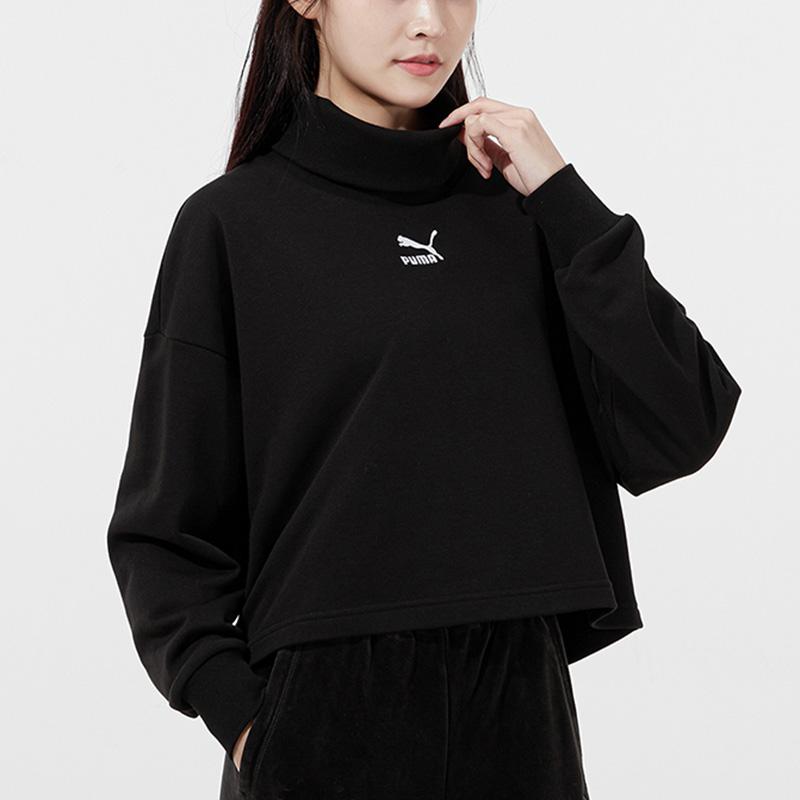 Puma Классический пуловер с вышитым логотипом и высоким воротом, женские топы, черный 534145-01