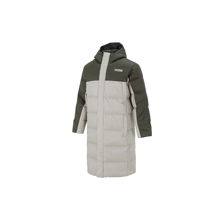 Puma Длинный лоскутный теплый пуховик с логотипом и принтом, мужская верхняя одежда, виноградно-зеленый, 846321-44