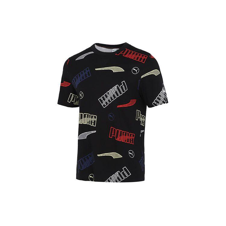 Puma Американские ретро свободные буквы печати Повседневные Круглый вырез Спортивные короткий рукав футболка мужские топы черный 532706-01