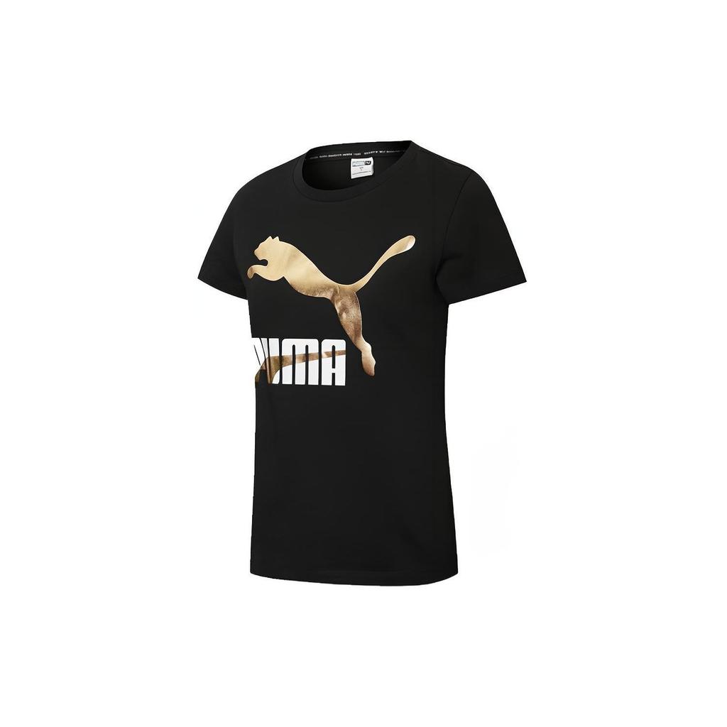 Puma Повседневная спортивная футболка с коротким рукавом и круглым вырезом с принтом, женские топы, черный 532282-51