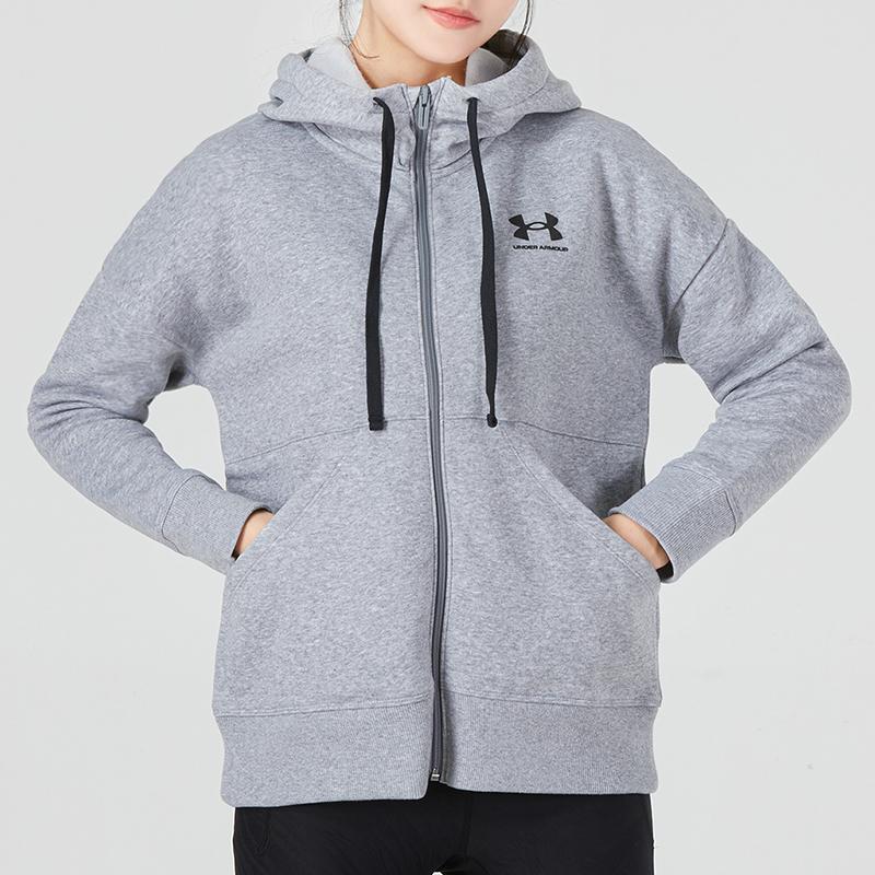 Under Armour Толстовка с капюшоном Rival Logo Full-zip с завязками на шнурке, женская, серая 1356400-036