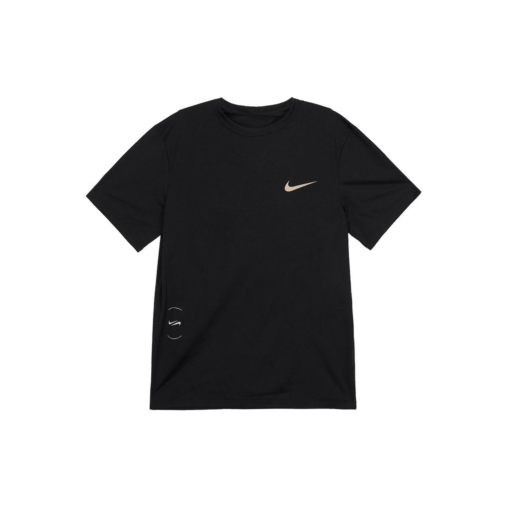 Nike Сплошной цвет с круглым вырезом и принтом, повседневная спортивная футболка с коротким рукавом, мужские топы, черный FN7290-010
