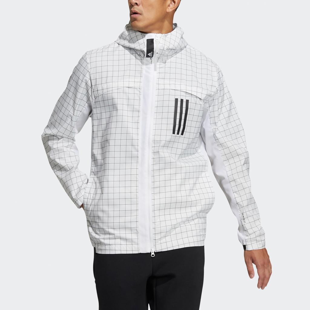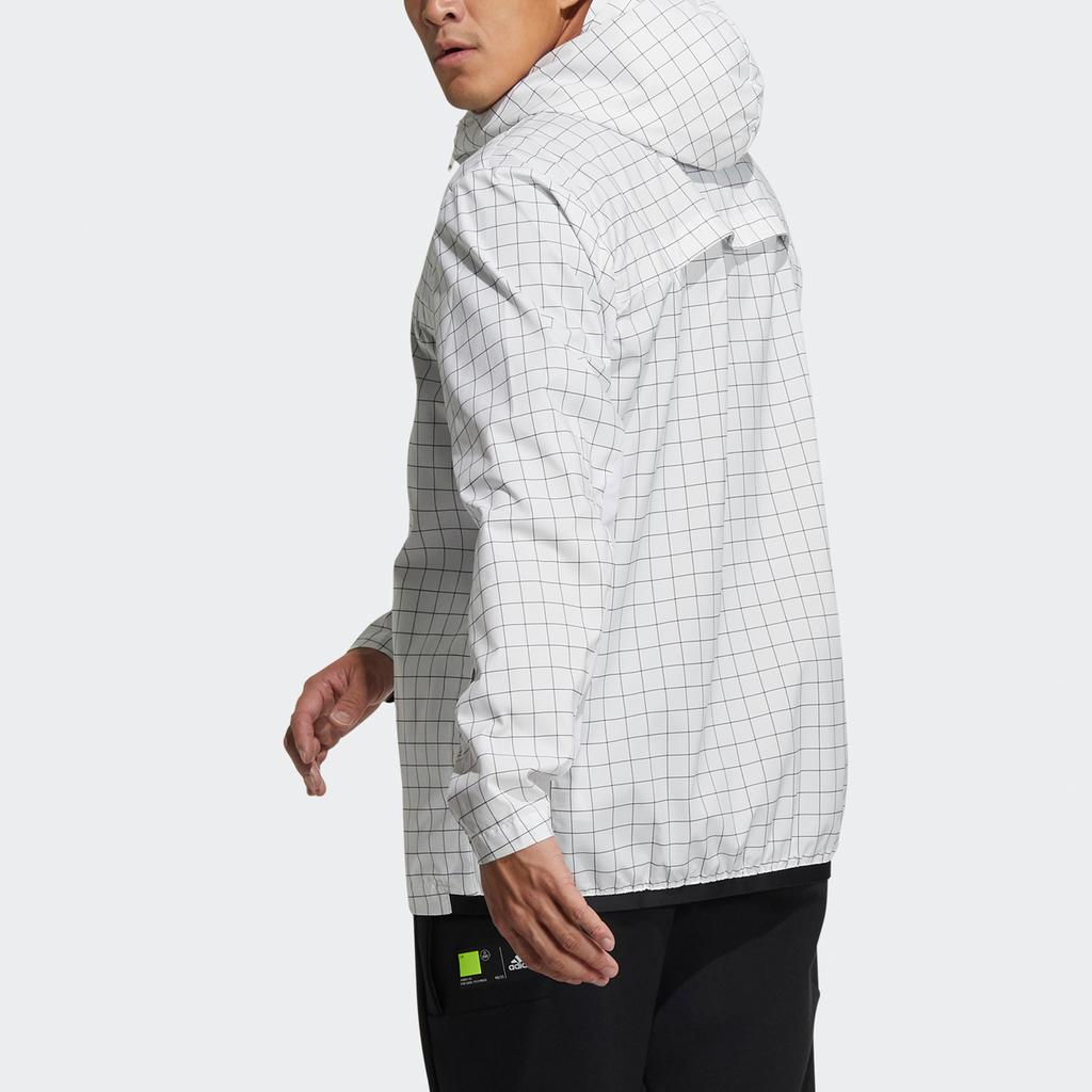 Adidas ВНД. Куртка с клетчатым ветрозащитным капюшоном Мужская верхняя одежда белая GL8686