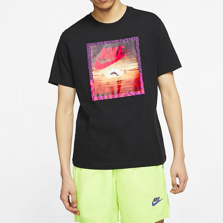 Nike Футболка с коротким рукавом и принтом дельфинов и заката, мужские топы, черная CT6591-010