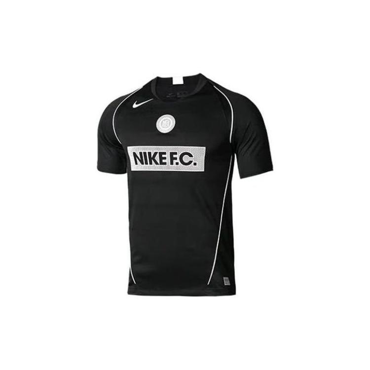 Nike Logo Print Round Neck Quick-Dry Football Short Sleeve T-Shirt Men Tops Black At6018-010
