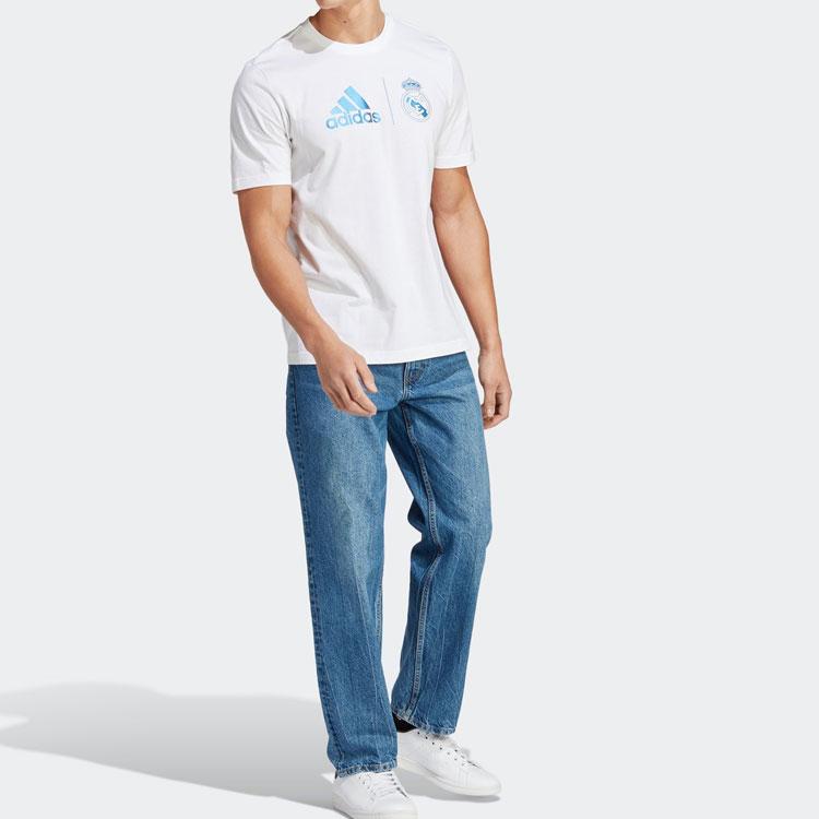 Adidas Футболка Real Madrid с графическим принтом, культурная спортивная футболка с круглым вырезом и коротким рукавом, мужские топы белого цвета HT6463
