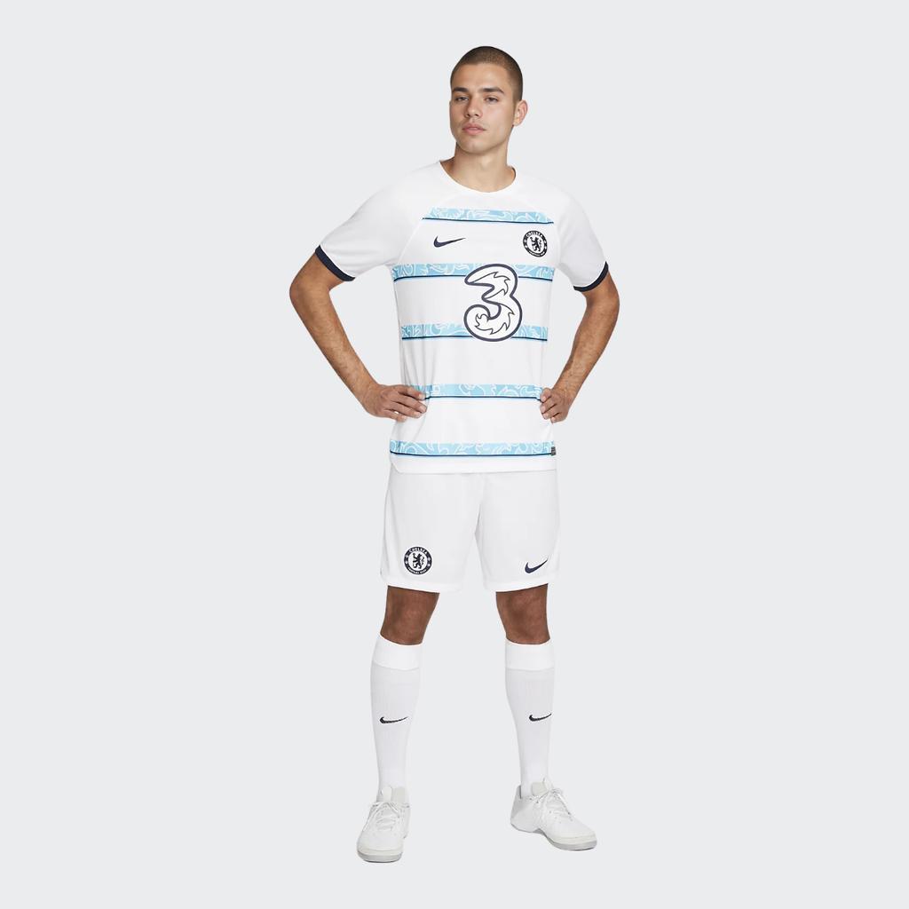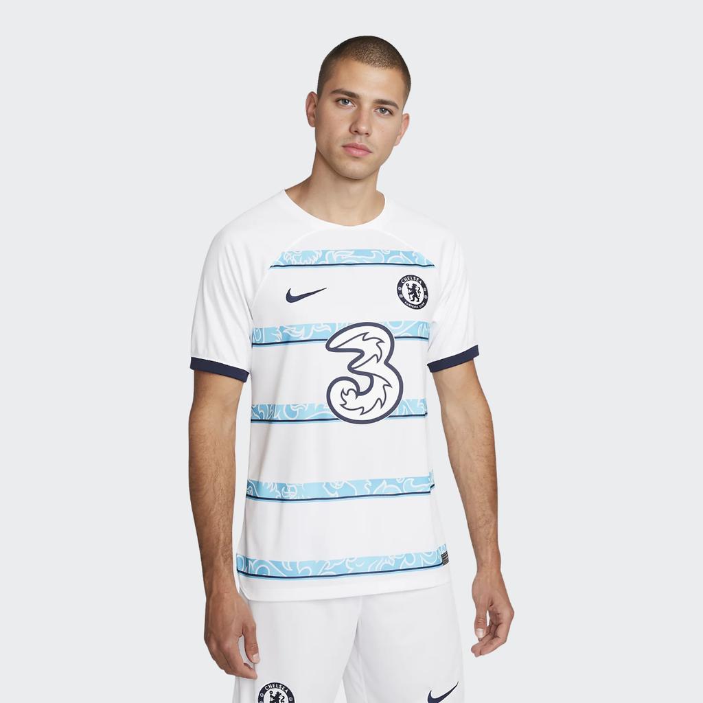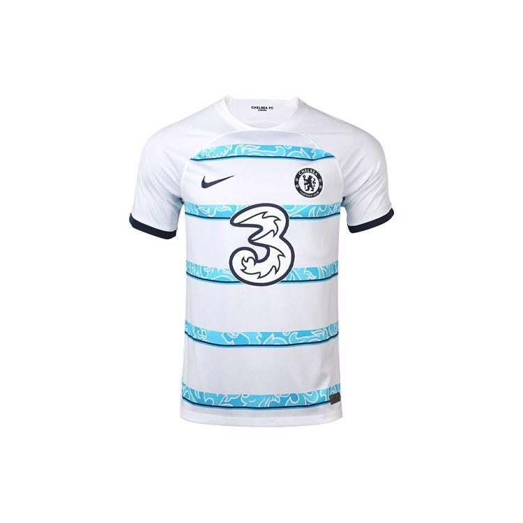 Nike Челси На выезде Нет. 3-полосный футбольный трикотаж с буквенным принтом и круглым вырезом, с коротким рукавом, мужские топы, белый цвет, DM1834-101