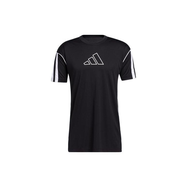 Adidas Полосатая футболка с вышитым логотипом и круглым вырезом с коротким рукавом, мужские топы, черный GL0465