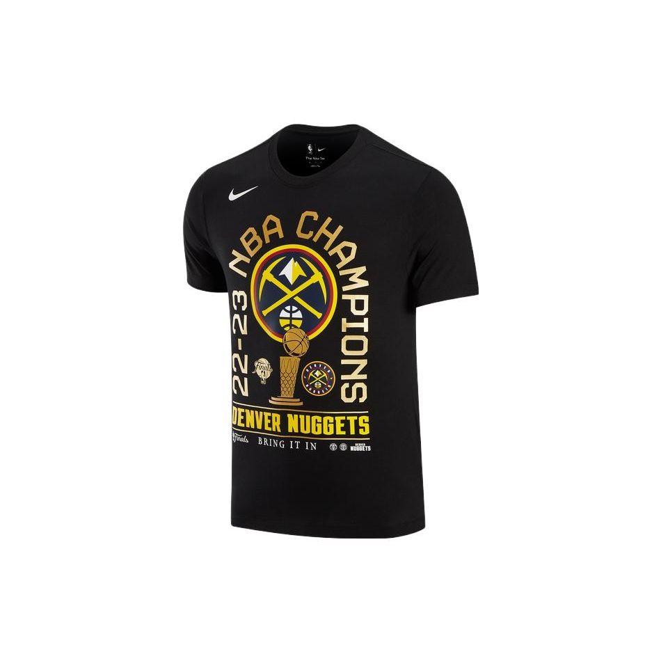 Nike X NBA Denver Nuggets Значок с буквенным принтом Баскетбольная футболка с круглым вырезом с коротким рукавом Мужские топы Черные HF1913-010