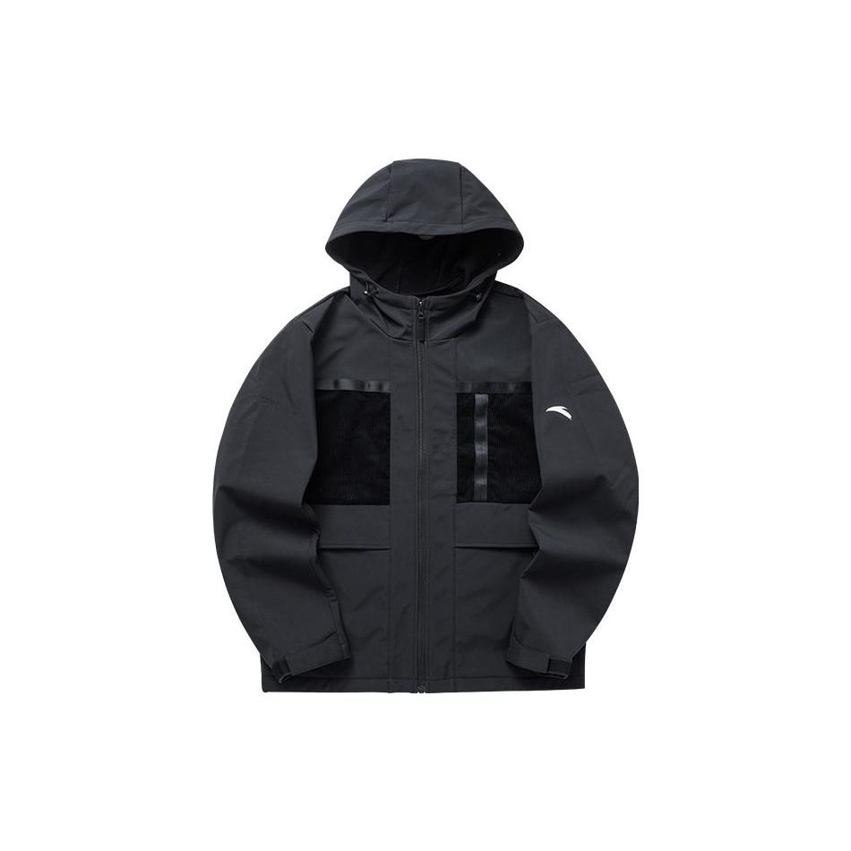 Anta Мужская однотонная ветрозащитная куртка с капюшоном Sharp Series, черная 152140601-3