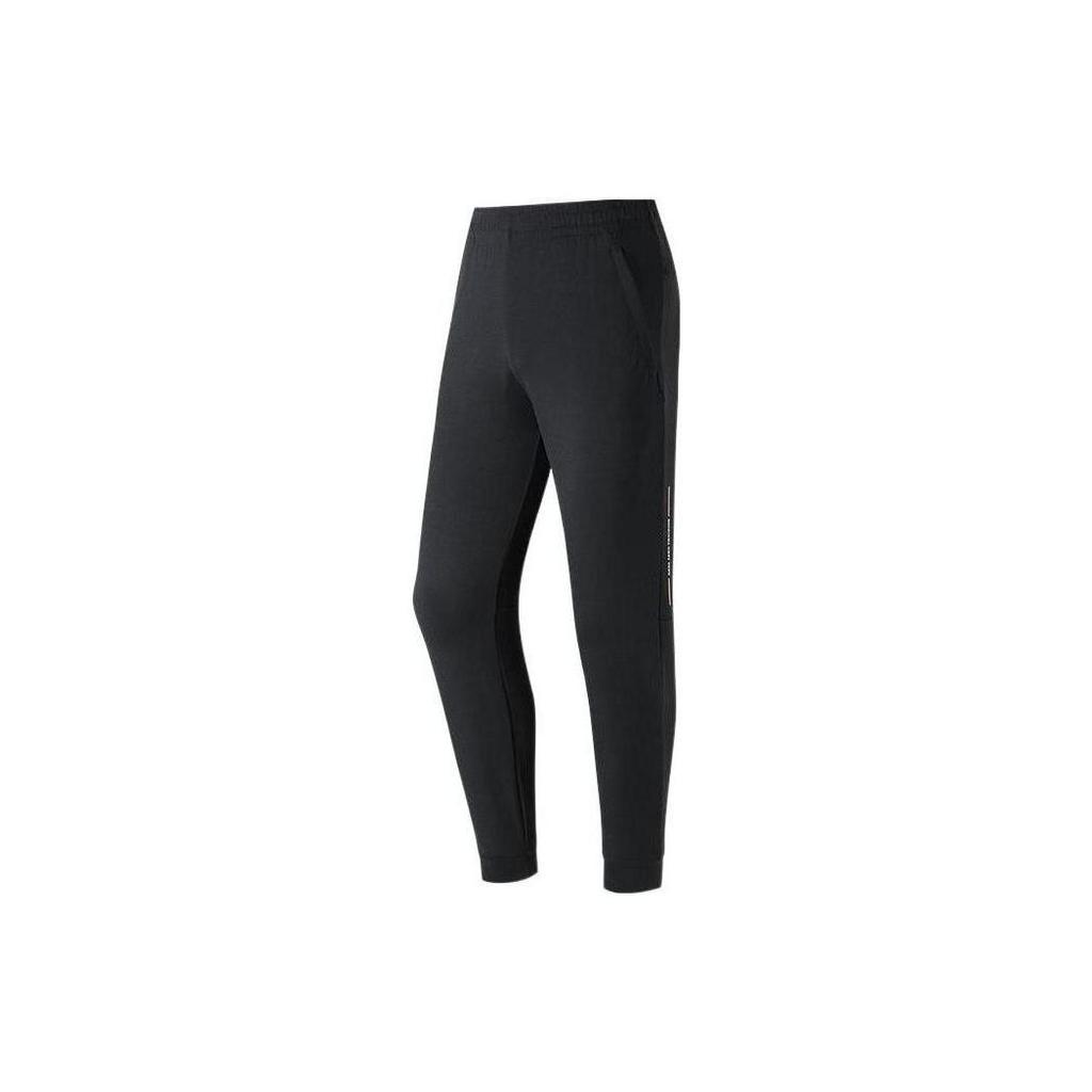 Anta Однотонные трикотажные облегающие спортивные штаны с эластичными манжетами, мужские низы, черные 152227309-2